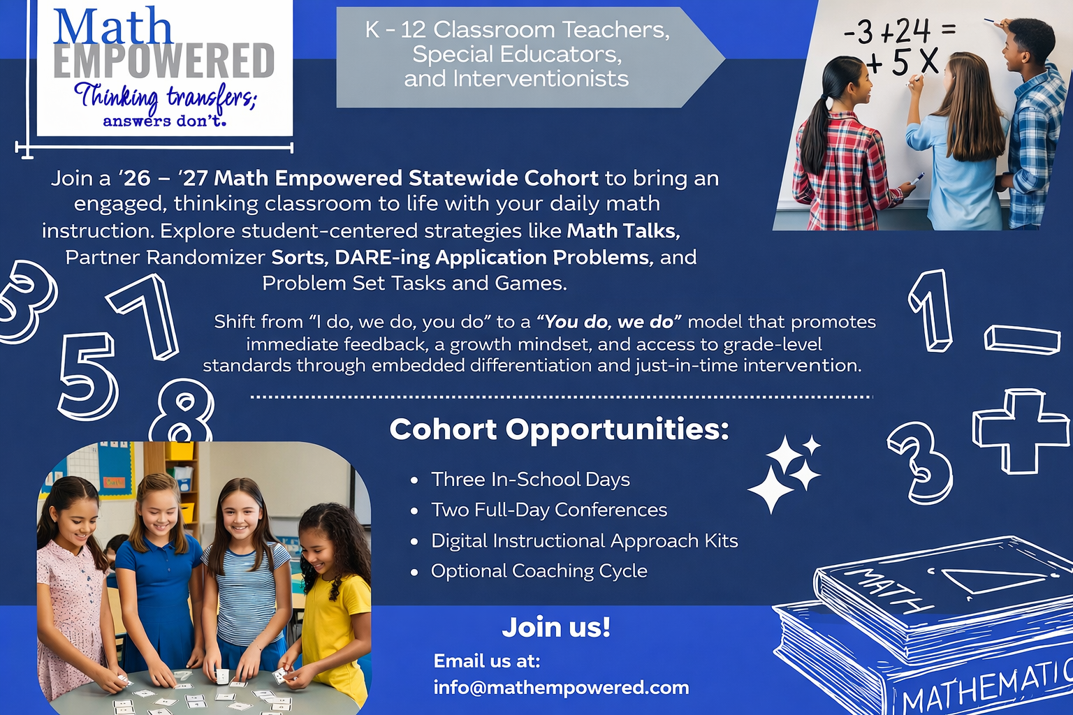 📅 Schedule a 30-minute Google Meet to learn how Math Empowered can support your team with ready-to-use instructional resources, statewide cohorts, coaching cycles, and customized PD for Summer 2026 and the 2026–2027 school year.